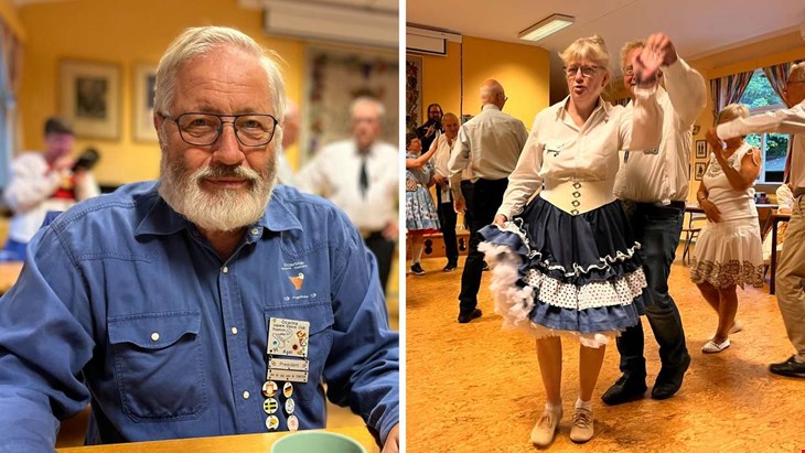 – På en helg när man är på ett squaredanskonvent så kan det bli 130 000 steg, berättar Hans Rödenphant som är en av de drygt 30 personerna som varje torsdag dansar i Försvarets Hus i Ängelholmsklubben Ocarina Square Dance Club.