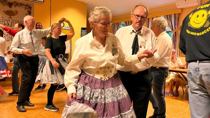 – En granne såg fick med mig till squaredansen i Stockholm, där jag då bodde. Sen flyttade vi ner till Ängelholm och startade en klubb direkt. Det är nu 30 år sedan och jag har varit ordförande i alla dessa år. Men jag tror att det är dags att lämna över den posten nu, hintar Axel.